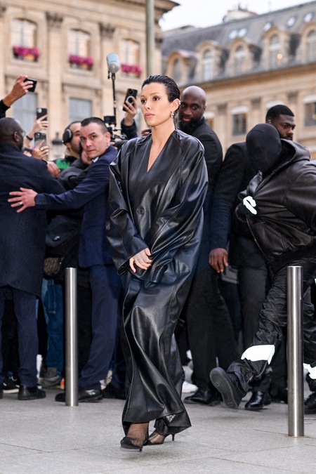 Kanye West (Ye) et sa femme Bianca Censori arrivent à l'hôtel Ritz lors de la semaine de la mode femme automne/hiver 2024-2025 (PFW)