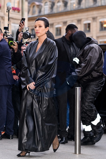 Kanye West (Ye) et sa femme Bianca Censori arrivent à l'hôtel Ritz lors de la semaine de la mode femme automne/hiver 2024-2025 (PFW)