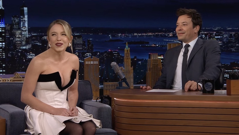 Sydney Sweeney sur le plateau du Tonight Show de Jimmy Fallon à New York