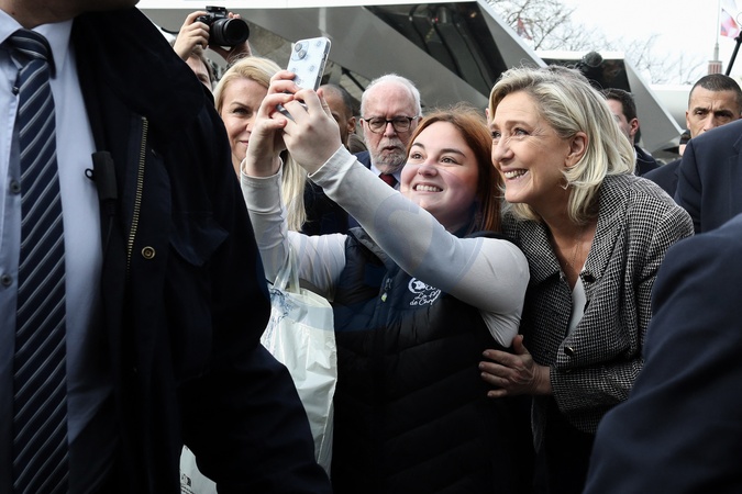Marine Le Pen, présidente du groupe Rassemblement National à l'Assemblée nationale lors de la 60ème édition du Salon international de l'Agriculture (SIA), Porte de Versailles, Paris, le 27 février 2024 © Stéphane Lemouton / Bestimage France, Paris, February 28 2024. Marine Le Pen (Rassemblement National) visits the Agricultural Fair, using selfies as a communication tool. Photograph