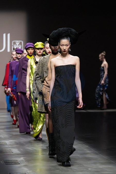 Hui - Models On Catwalk during Paris Fashion Week 2024 For Fall Winter Fashion Show.Woman Women, Defile, Fashion Show Runway Collection, Pret A Porter, Modelwear, Modeschau Laufsteg FranceModel, Fashion, Style, Look, Fashion Show, Runway, Catwalk, Credit:www.fashionpps.com / Avalon