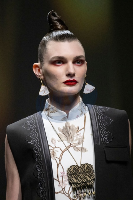 Hui - Models On Catwalk during Paris Fashion Week 2024 For Fall Winter Fashion Show.CloseUp, Details, Accessories, Woman Women, Defile, Fashion Show Runway Collection, Pret A Porter, Modelwear, Modeschau Laufsteg FranceModel, Fashion, Style, Look, Fashion Show, Runway, Catwalk, Credit:www.fashionpps.com / Avalon