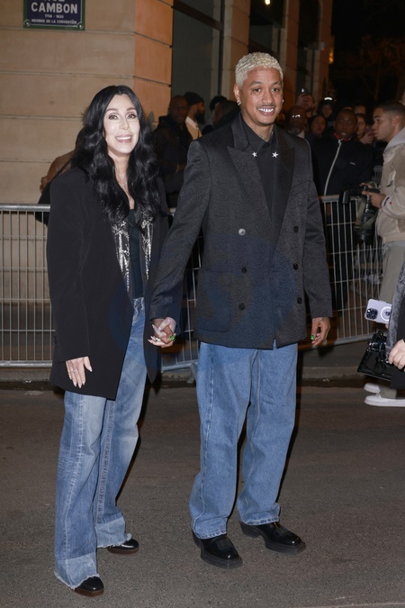 Cher et son compagnon Alexander Edwards - People au défilé de mode Femmes prêt-à-porter automne-hiver 2024/2025 «Balmain», au Pavillon Cambon, lors de la fashion week de Paris. Le 28 février 2024 © Christophe Aubert via Bestimage People at the Women PAP F/W 2024/2025 «Balmain» fashion show in Paris. On February 28th 2024