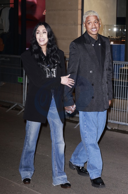 Cher et son compagnon Alexander Edwards - People au défilé de mode Femmes prêt-à-porter automne-hiver 2024/2025 «Balmain», au Pavillon Cambon, lors de la fashion week de Paris. Le 28 février 2024 © Christophe Aubert via Bestimage People at the Women PAP F/W 2024/2025 «Balmain» fashion show in Paris. On February 28th 2024