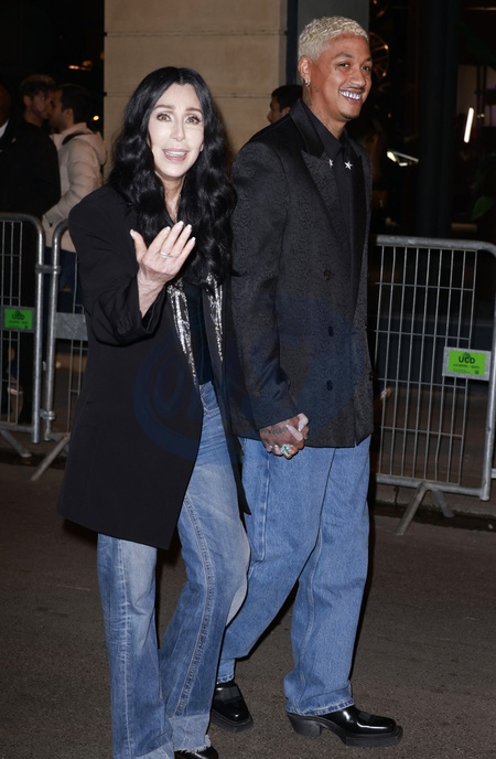 Cher et son compagnon Alexander Edwards - People au défilé de mode Femmes prêt-à-porter automne-hiver 2024/2025 «Balmain», au Pavillon Cambon, lors de la fashion week de Paris. Le 28 février 2024 © Christophe Aubert via Bestimage People at the Women PAP F/W 2024/2025 «Balmain» fashion show in Paris. On February 28th 2024