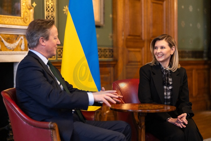La Première Dame d'Ukraine, Olena Zelenska, a entamé une visite de travail au Royaume-Uni pour participer à la conférence Soft Power Index. Le premier jour de la visite, la Première Dame a rencontré le secrétaire d'État britannique aux Affaires étrangères, du Commonwealth et du Développement, David Cameron, Londres, Royaume Uni, le 29 février 2024. © Ukraine Presidency via Bestimage First Lady of Ukraine Olena Zelenska has begun a working visit to the UK to participate in the Soft Power Index conference. On the first day of the visit, the President's wife met with Secretary of State for Foreign, Commonwealth and Development Affairs of the United Kingdom David Cameron. She thanked him for consistently supporting Ukraine.