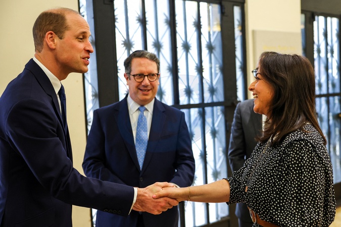 Britain's Prince William shakes hand with Karen Pollock, CEO of the Holocaust Educational Trust, as he visits the Western Marble Arch Synagogue, in London, Britain, February 29, 2024. NO UK USE FOR 48 HOURS, Credit:Avalon.red / Avalon