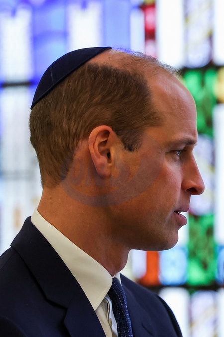 Britain's Prince William wears a kippah as he visits the Western Marble Arch Synagogue, in London, Britain, February 29, 2024., Credit:Toby Melville / Avalon