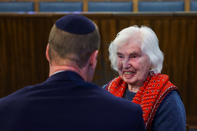 Britain's Prince William meets with Renee Salt, 94, a Holocaust survivor, at the Western Marble Arch Synagogue, in London, Britain, February 29, 2024., Credit:Toby Melville / Avalon