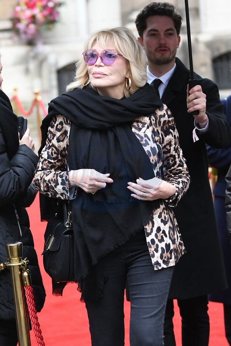 Amanda Lear arrive au showroom de la maison Vivier (Roger Vivier chaussure) pour la collection automne / hiver 2024-2025 lors de la Fashion Week de Paris (PFW), à la maison de l'Amérique Latine, à Paris, France, le 29 février 2024. Amanda Lear arrives at the Maison Vivier (Roger Vivier shoe) showroom for the Fall/Winter 2024-2025 collection during Paris Fashion Week (PFW), at the Maison de l'Amérique Latine, in Paris, France on February 29 2024.
