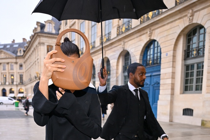 Irina Shayk nie chce, żeby ją fotografowano i filmowano, gdy przybywa, aby pokazać Schiaparelli modę damską na jesień/zimę 2024–2025 podczas Tygodnia Mody w Paryżu (PFW) w Pavillon Vendôme
