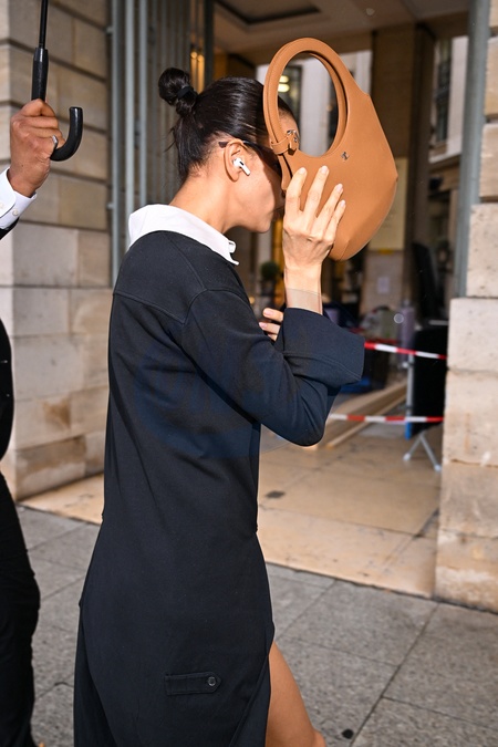 Exclusif - Irina Shayk ne veut pas être photographié à son arrivée pour défiler pour Schiaparelli lors de la mode femme automne / hiver 2024-2025 lors de la Fashion Week de Paris (PFW) au Pavillon Vendôme, à Paris, France, le 29 février 2024. Exclusive - Irina Shayk does not want to be photographed as she arrives to show for Schiaparelli during Fall/Winter 2024-2025 women's fashion during Paris Fashion Week (PFW) at Pavillon Vendôme, in Paris, France, on February 29, 2024.