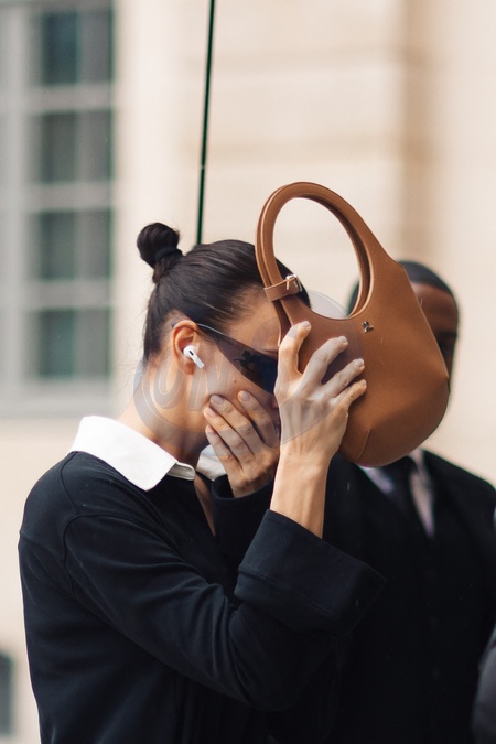 Exclusif - Irina Shayk ne veut pas être photographiée à son arrivée pour défiler pour Schiaparelli lors de la mode femme automne / hiver 2024-2025 lors de la Fashion Week de Paris (PFW) au Pavillon Vendôme