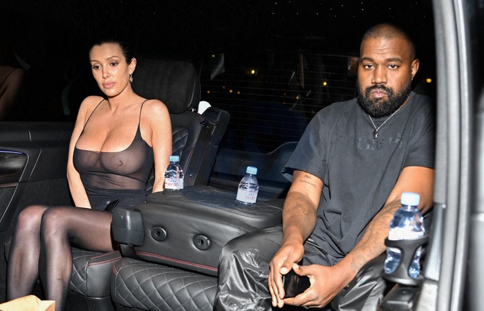 Exclusif - No web - Prix Special - Kanye West (Ye) et sa femme Bianca Censori sont allés dîner au restaurant Ferdi à Paris, France, le 28 février 2024, en marge de la Fashion Week de Paris. Bianca Censori est encore très légèrement habillée avec un débardeur transparent et d'un simple collant transparent sans sous-vêtements. Exclusive - No Web - For Germany Call For Price - Kanye West (Ye) and his wife Bianca Censori went to dinner at Ferdi restaurant in Paris, France on February 28, 2024, as part the Paris Fashion Week. Bianca Censori is still very lightly dressed with a transparent tank top and simple transparent tights without underwear.