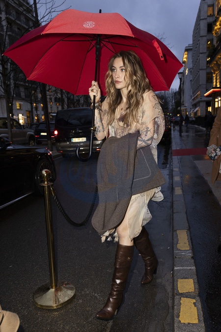 Exclusif - Paris Jackson à la sortie du Plaza Athénée à Paris lors de la Fashion Week de Paris (PFW) le 29 février 2024. © Cyril Moreau / Bestimage Exclusive - For Germany call for price - Paris Jackson is seen leaving Plaza Athenee in paris during the fashion week on 29/02/2024.