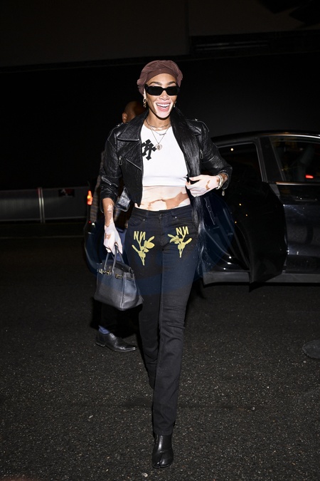 Winnie Harlow essaie d'esquiver la pluie à l'extérieur de l'hôtel Costes à Paris en marge de la fashion week (PFW) le 29 février 2024. © Pierre Perusseau / Tiziano Da Silva / Bestimage Winnie Harlow tries to dodge the rain outside the Costes Hotel in Paris on the sidelines of Fashion Week (PFW) on 29 February 2024.