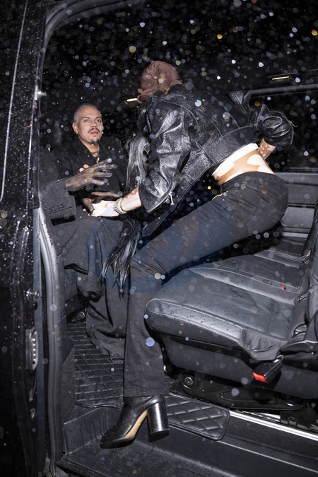 Winnie Harlow essaie d'esquiver la pluie à l'extérieur de l'hôtel Costes à Paris en marge de la fashion week (PFW) le 29 février 2024. © Pierre Perusseau / Tiziano Da Silva / Bestimage Winnie Harlow tries to dodge the rain outside the Costes Hotel in Paris on the sidelines of Fashion Week (PFW) on 29 February 2024.