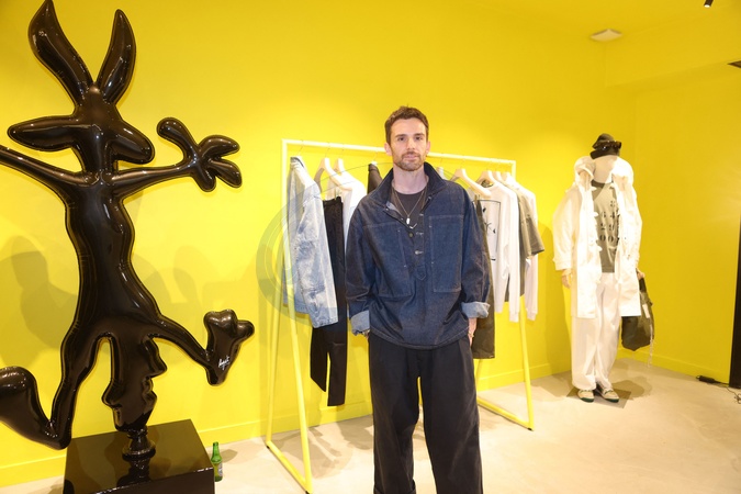 Exclusif - Guy Berryman, bassiste de Coldplay, présente sa collection de prêt à porter Applied Art Forms dans la boutique Rainbow à Bordeaux le 29 février 2024. © Jean-Marc Lhomer / Bestimage Exclusive - No web en Suisse / Belgique Guy Berryman, bassist with Coldplay, presents his Applied Art Forms ready-to-wear collection in the Rainbow boutique in Bordeaux on 29 February 2024.