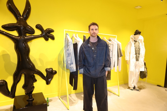 Exclusif - Guy Berryman, bassiste de Coldplay, présente sa collection de prêt à porter Applied Art Forms dans la boutique Rainbow à Bordeaux le 29 février 2024. © Jean-Marc Lhomer / Bestimage Exclusive - No web en Suisse / Belgique Guy Berryman, bassist with Coldplay, presents his Applied Art Forms ready-to-wear collection in the Rainbow boutique in Bordeaux on 29 February 2024.