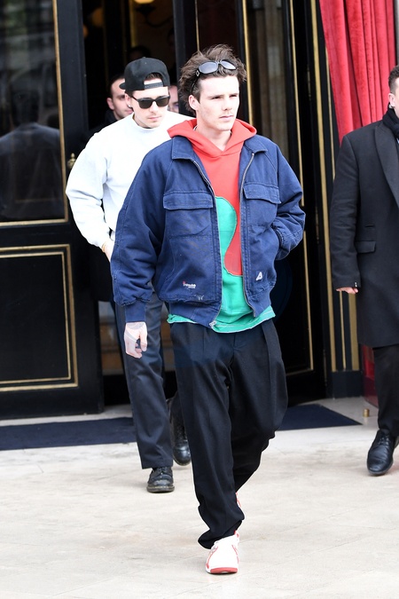 Cruz et Brooklyn - La famille Beckham à la sortie de l'hôtel La Réserve lors de la mode femme automne / hiver 2024-2025 lors de la Fashion Week de Paris (PFW), à Paris, France, le 1 mars 2024. Beckham family leaving the Hotel La Réserve during the Fall/Winter 2024-2025 women's fashion show during Paris Fashion Week (PFW), in Paris, France, on March 1, 2024.