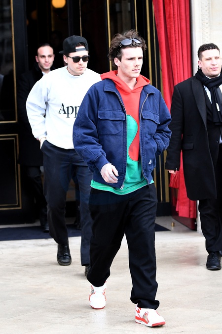 Cruz et Brooklyn - La famille Beckham à la sortie de l'hôtel La Réserve lors de la mode femme automne / hiver 2024-2025 lors de la Fashion Week de Paris (PFW), à Paris, France, le 1 mars 2024. Beckham family leaving the Hotel La Réserve during the Fall/Winter 2024-2025 women's fashion show during Paris Fashion Week (PFW), in Paris, France, on March 1, 2024.