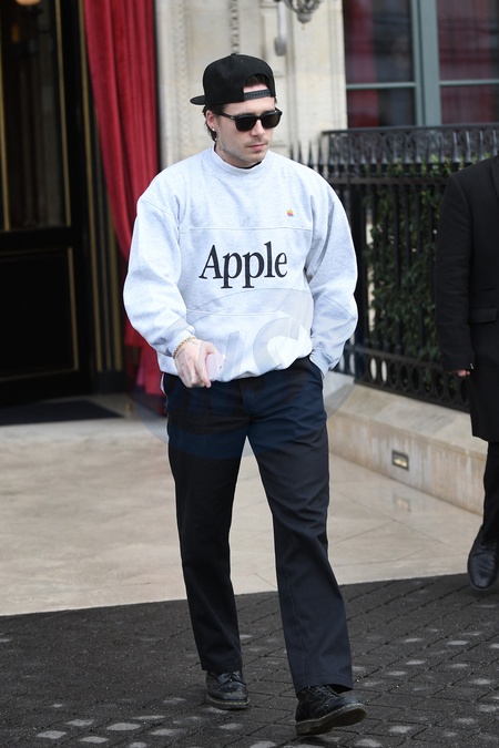 Brooklyn - La famille Beckham à la sortie de l'hôtel La Réserve lors de la mode femme automne / hiver 2024-2025 lors de la Fashion Week de Paris (PFW), à Paris, France, le 1 mars 2024. Beckham family leaving the Hotel La Réserve during the Fall/Winter 2024-2025 women's fashion show during Paris Fashion Week (PFW), in Paris, France, on March 1, 2024.