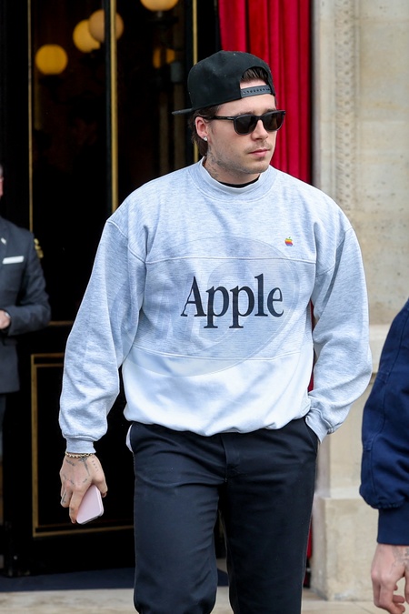Brooklyn - La famille Beckham à la sortie de l'hôtel La Réserve lors de la mode femme automne / hiver 2024-2025 lors de la Fashion Week de Paris (PFW), à Paris, France, le 1 mars 2024. Beckham family leaving the Hotel La Réserve during the Fall/Winter 2024-2025 women's fashion show during Paris Fashion Week (PFW), in Paris, France, on March 1, 2024.