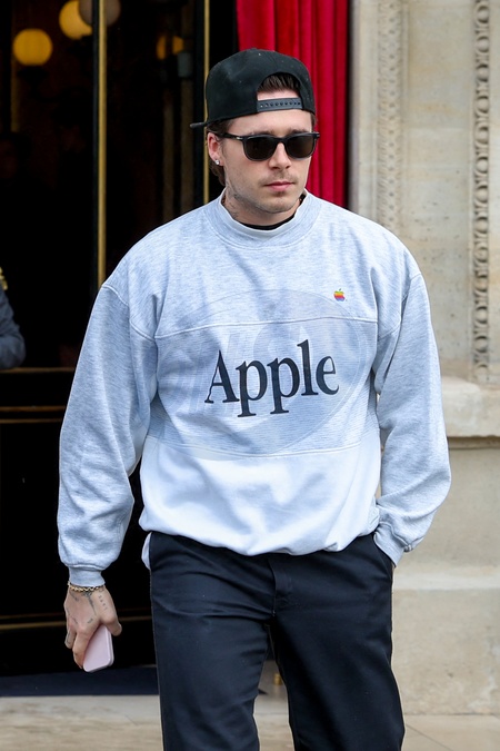 Brooklyn - La famille Beckham à la sortie de l'hôtel La Réserve lors de la mode femme automne / hiver 2024-2025 lors de la Fashion Week de Paris (PFW), à Paris, France, le 1 mars 2024. Beckham family leaving the Hotel La Réserve during the Fall/Winter 2024-2025 women's fashion show during Paris Fashion Week (PFW), in Paris, France, on March 1, 2024.