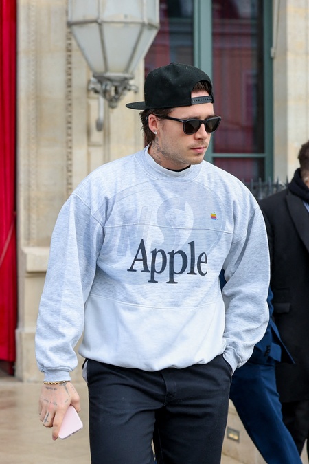 Brooklyn - La famille Beckham à la sortie de l'hôtel La Réserve lors de la mode femme automne / hiver 2024-2025 lors de la Fashion Week de Paris (PFW), à Paris, France, le 1 mars 2024. Beckham family leaving the Hotel La Réserve during the Fall/Winter 2024-2025 women's fashion show during Paris Fashion Week (PFW), in Paris, France, on March 1, 2024.
