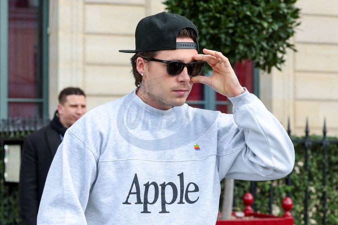 Brooklyn - La famille Beckham à la sortie de l'hôtel La Réserve lors de la mode femme automne / hiver 2024-2025 lors de la Fashion Week de Paris (PFW), à Paris, France, le 1 mars 2024. Beckham family leaving the Hotel La Réserve during the Fall/Winter 2024-2025 women's fashion show during Paris Fashion Week (PFW), in Paris, France, on March 1, 2024.