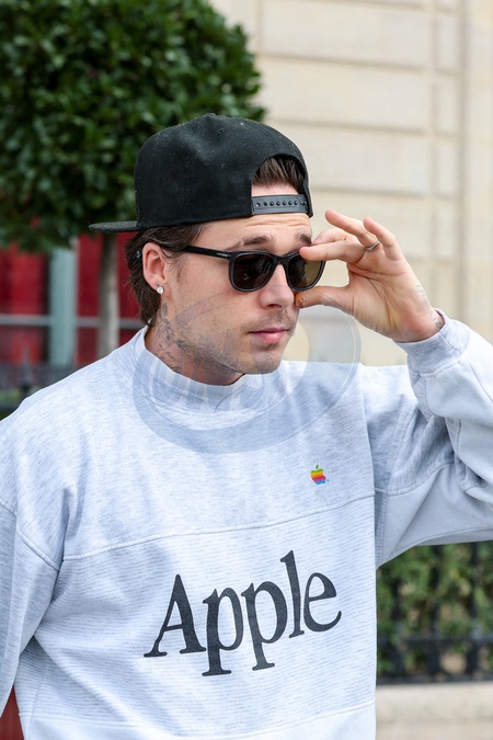 Brooklyn - La famille Beckham à la sortie de l'hôtel La Réserve lors de la mode femme automne / hiver 2024-2025 lors de la Fashion Week de Paris (PFW), à Paris, France, le 1 mars 2024. Beckham family leaving the Hotel La Réserve during the Fall/Winter 2024-2025 women's fashion show during Paris Fashion Week (PFW), in Paris, France, on March 1, 2024.