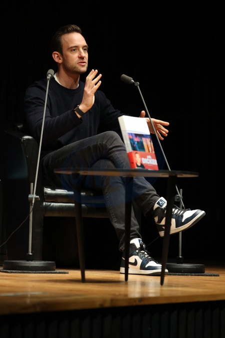 Exclusif - Joël Dicker échange avec ses lecteurs à l'occasion de la sortie de son livre Animal Sauvage au centre de conférence "La Station Ausone - Librairie Mollat "à Bordeaux