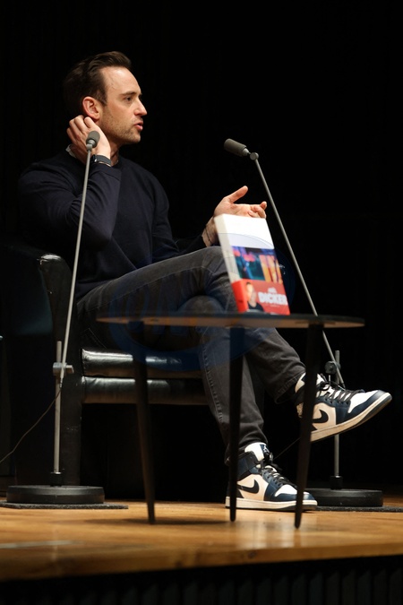 Exclusif - Joël Dicker échange avec ses lecteurs à l'occasion de la sortie de son livre Animal Sauvage au centre de conférence "La Station Ausone - Librairie Mollat "à Bordeaux