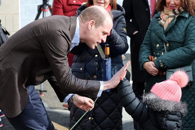Prince William, Prince of Wales has a high five with young fan Florence Boyle during his visit to The Turf Pub, near Wrexham AFC as he marks St. David's Day on March 01, 2024 in Wrexham, Wales.NO UK USE FOR 48 HOURS, Credit:Avalon.red / Avalon
