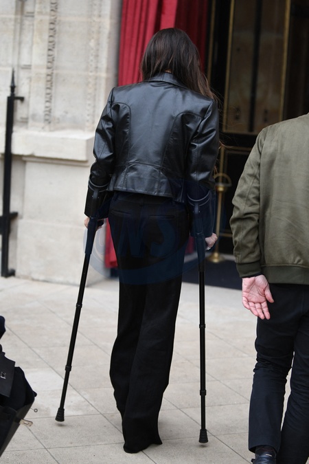 Exclusif - Victoria Beckham arrive à l'hôtel La Réserve lors de la mode femme automne / hiver 2024-2025 lors de la Fashion Week de Paris (PFW), à Paris, France, le 1er mars 2024. La Spice Girl de 49 ans s'est cassée le pied le jour de la Saint-Valentin après être tombée à la salle de sport. Exclusive - For Germany Call For Price - Victoria Beckham arrives at Hotel La Réserve during the Fall/Winter 2024-2025 women's fashion show during Paris Fashion Week (PFW), in Paris, France, March 1, 2024.