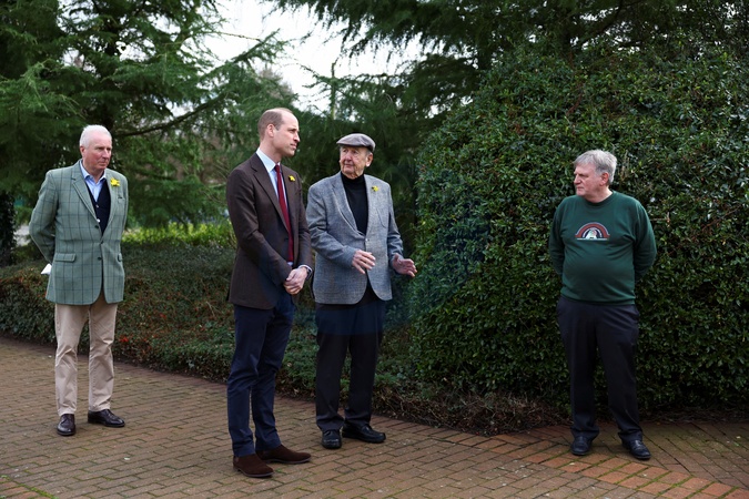Britain's Prince William meets with Alan Jones chairman of Gresford disaster memorial and George Powell, lead volunteer at the Wrexham Miners Project, during a visit to the Gresford Colliery Disaster memorial in Wales, Britain March 1, 2024., Credit:Molly Darlington / Avalon