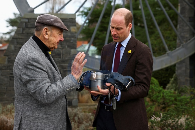 Britain's Prince William is accompanied by Alan Jones chairman of Gresford disaster memorial, during a visit to the Gresford Colliery Disaster memorial in Wales, Britain March 1, 2024., Credit:Molly Darlington / Avalon