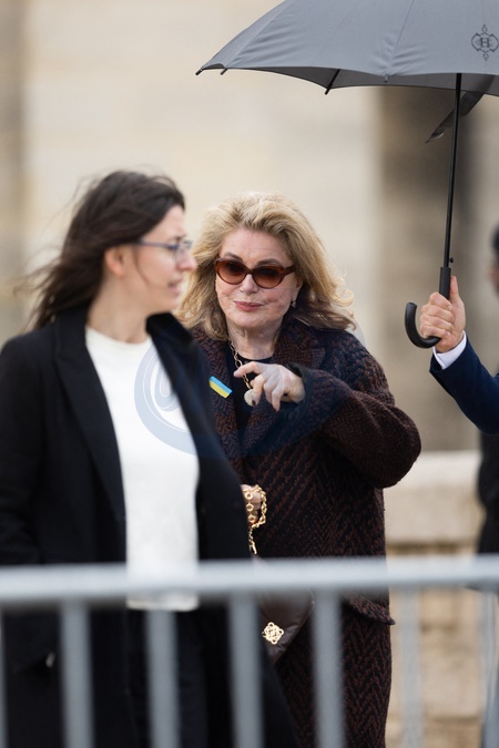 Catherine Deneuve - Les célébrités arrivent au défilé Loewe au château de de Vincennes lors de la mode femme automne / hiver 2024-2025 lors de la Fashion Week de Paris (PFW), le 1er mars 2024. Celebrities arrive at the Loewe fashion show at Esplanade Saint Louis during Fall/Winter 2024-2025 women's fashion during Paris Fashion Week (PFW), March 1, 2024.