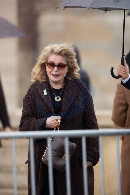 Catherine Deneuve - Les célébrités arrivent au défilé Loewe au château de de Vincennes lors de la mode femme automne / hiver 2024-2025 lors de la Fashion Week de Paris (PFW), le 1er mars 2024. Celebrities arrive at the Loewe fashion show at Esplanade Saint Louis during Fall/Winter 2024-2025 women's fashion during Paris Fashion Week (PFW), March 1, 2024.