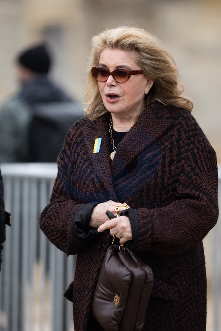 Catherine Deneuve - Les célébrités arrivent au défilé Loewe au château de de Vincennes lors de la mode femme automne / hiver 2024-2025 lors de la Fashion Week de Paris (PFW), le 1er mars 2024. Celebrities arrive at the Loewe fashion show at Esplanade Saint Louis during Fall/Winter 2024-2025 women's fashion during Paris Fashion Week (PFW), March 1, 2024.