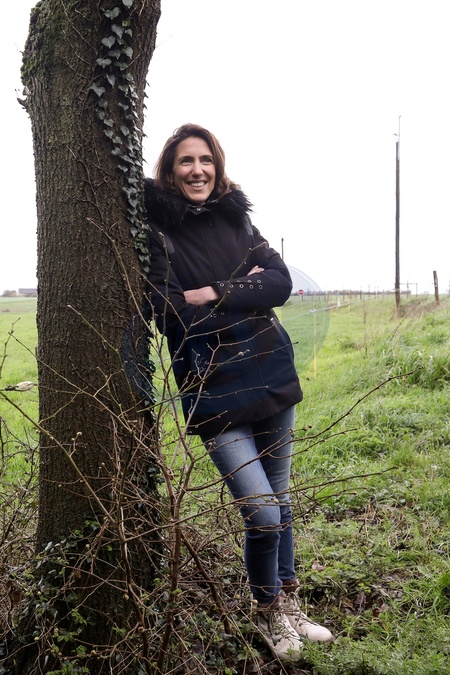 Valerie Hayer, tête de liste de la majorité (Renaissance) pour les élections européennes, va à la rencontre d'agriculteurs dans une ferme laitière à Chémeré-le-Roi