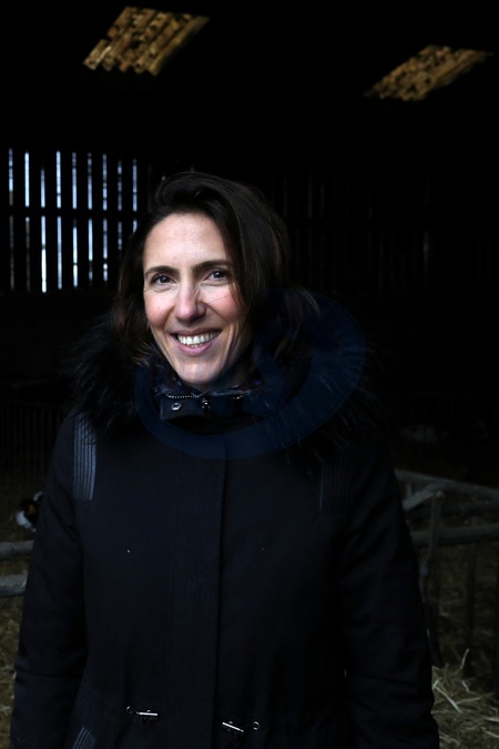 Valérie Hayer, tête de liste de la majorité, Renaissance pour les élections européennes est allée à la rencontre d'agriculteurs dans une ferme laitière lors de sa première visite dans le cadre des élections européennes, à Chémeré-le-Roi, près de Laval, en Mayenne, Bretagne, le 1er mars 2024. © Stéphane Lemouton / Bestimage Valérie Hayer, head of the majority list, Renaissance for the European elections, went to meet farmers on a dairy farm during her first visit as part of the European elections, in Chémeré-le-Roi, near Laval, in Mayenne, Brittany, on March 1, 2024.