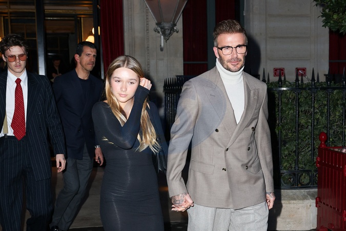 Rodzina Beckhamów opuszcza hotel La Réserve podczas pokazu mody damskiej jesień/zima 2024-2025 podczas Tygodnia Mody w Paryżu