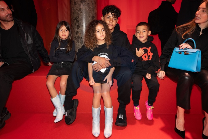 Enfants Cristiano Ronaldo et Georgina Rodrigez au défilé Vetements mode femme automne / hiver 2024-2025 lors de la Fashion Week de Paris (PFW), au Pavillon Cambon , France, le 1er Mars 2024. © Jérémy Melloul/Bestimage Vetements womenswear fall/winter 2024-2025 show during Paris Fashion Week (PFW), at Pavillon Cambon, France, on March 1st, 2024.