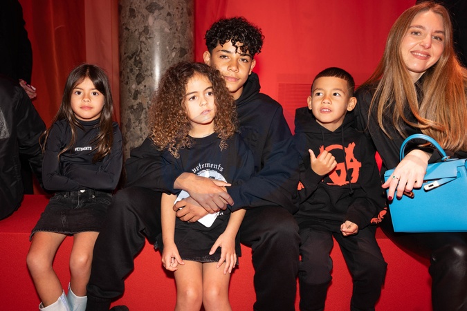 Enfants Cristiano Ronaldo et Georgina Rodrigez au défilé Vetements mode femme automne / hiver 2024-2025 lors de la Fashion Week de Paris (PFW), au Pavillon Cambon , France, le 1er Mars 2024. © Jérémy Melloul/Bestimage Vetements womenswear fall/winter 2024-2025 show during Paris Fashion Week (PFW), at Pavillon Cambon, France, on March 1st, 2024.