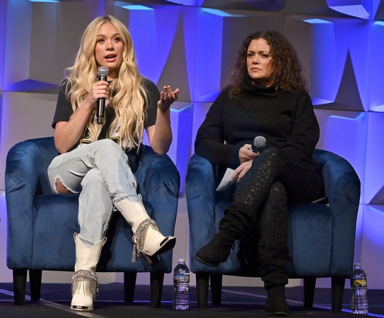Megan Moroney and Juli Griffith onstage at Cycle of a Song: Megan Moroney's "Tennessee Orange” during CRS 2024 held at Omni Nashville on March 1, 2024 in Nashville, TN© Tammie Arroyo / AFF-USA.com