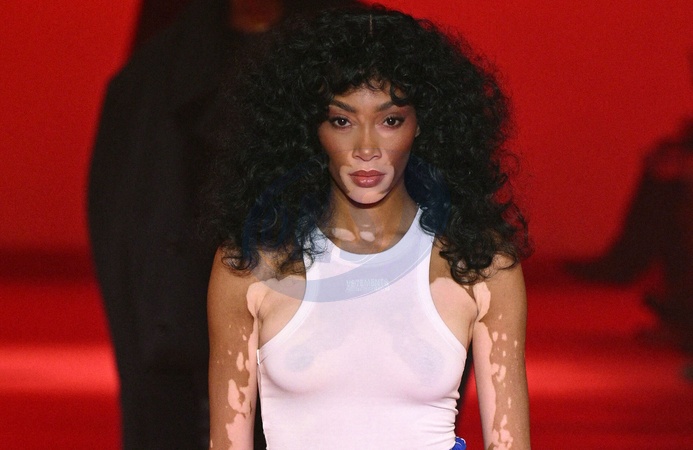 Winnie Harlow au défilé Vetements mode femme automne / hiver 2024-2025 lors de la Fashion Week de Paris (PFW), au pavillon Cambon, à Paris, France, le 1er Mars 2024. Vetements womenswear fall/winter 2024-2025 show during Paris Fashion Week (PFW), at Pavillon Cambon, France, on March 1st, 2024.