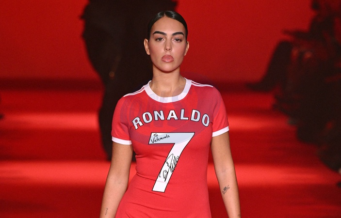 Georgina Rodrigez au défilé Vetements mode femme automne / hiver 2024-2025 lors de la Fashion Week de Paris (PFW), au pavillon Cambon, à Paris, France, le 1er Mars 2024. Vetements womenswear fall/winter 2024-2025 show during Paris Fashion Week (PFW), at Pavillon Cambon, France, on March 1st, 2024.
