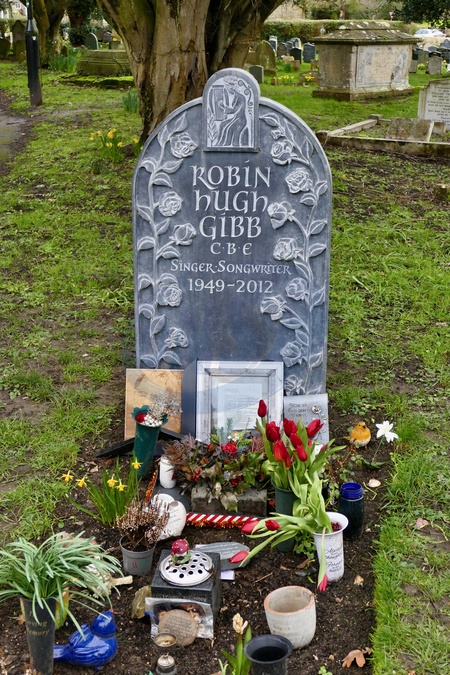 The grave and headstone for Bee Gee Robin Gibb in St Mary the Virgin Church in Thame., Credit:Geoffrey Swaine / Avalon