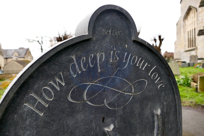 The grave and headstone for Bee Gee Robin Gibb in St Mary the Virgin Church in Thame., Credit:Geoffrey Swaine / Avalon